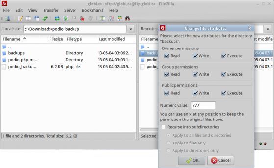 3 - Change the permissions of the "backups" folder to be writeable by all (chmod 777)