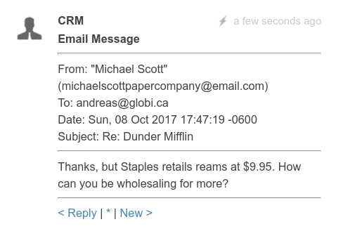 Similarly, any response that the customer sends to you gets automatically added to the Podio lead.